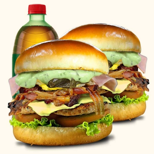 2 Triplo X-burguer artesanal + 1 Guaraná Antártica de 1 Lt.
